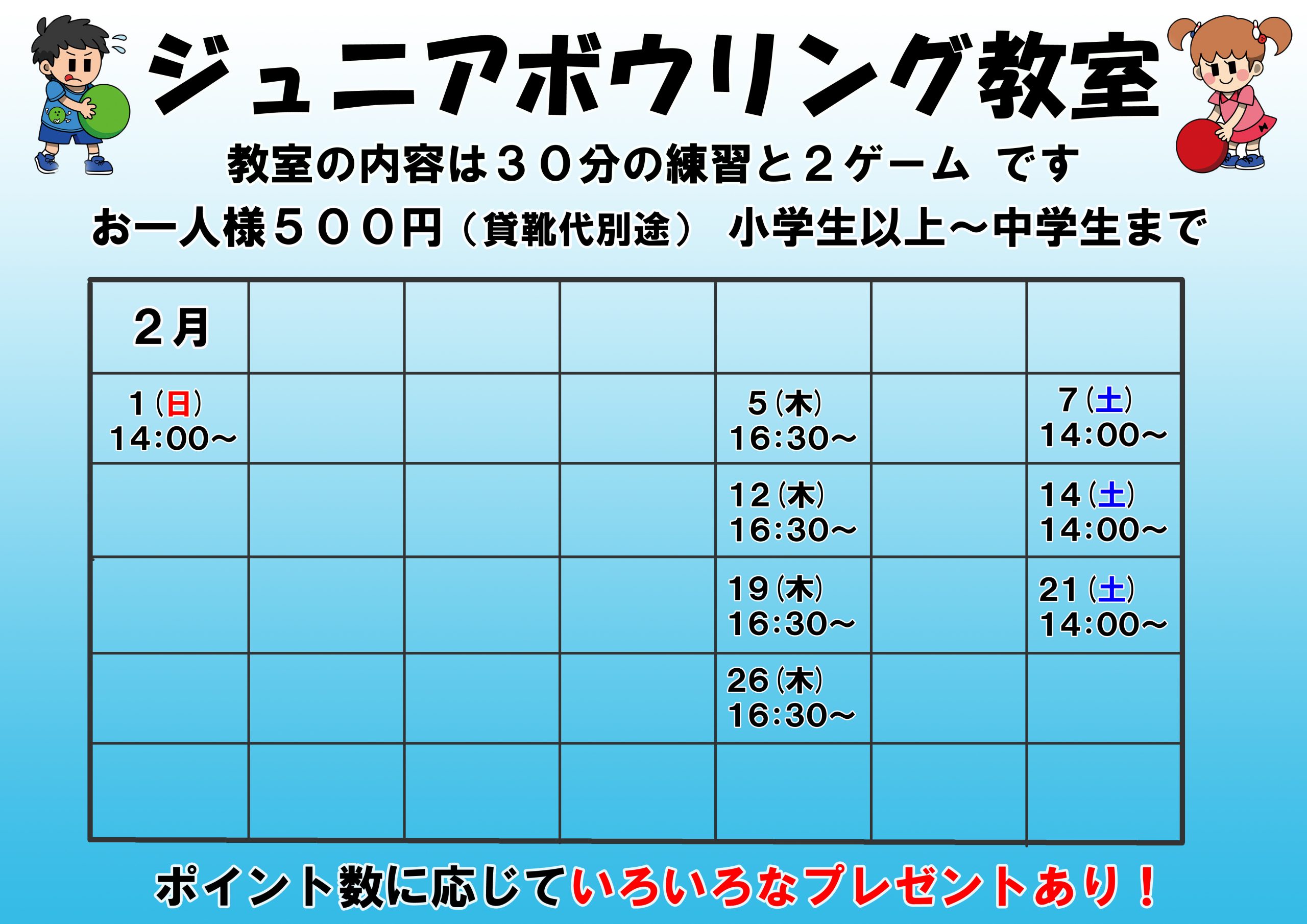 2月度ジュニアボウリング教室のご案内