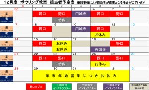 教室担当者カレンダー
