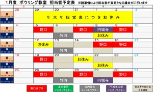 教室担当者カレンダー